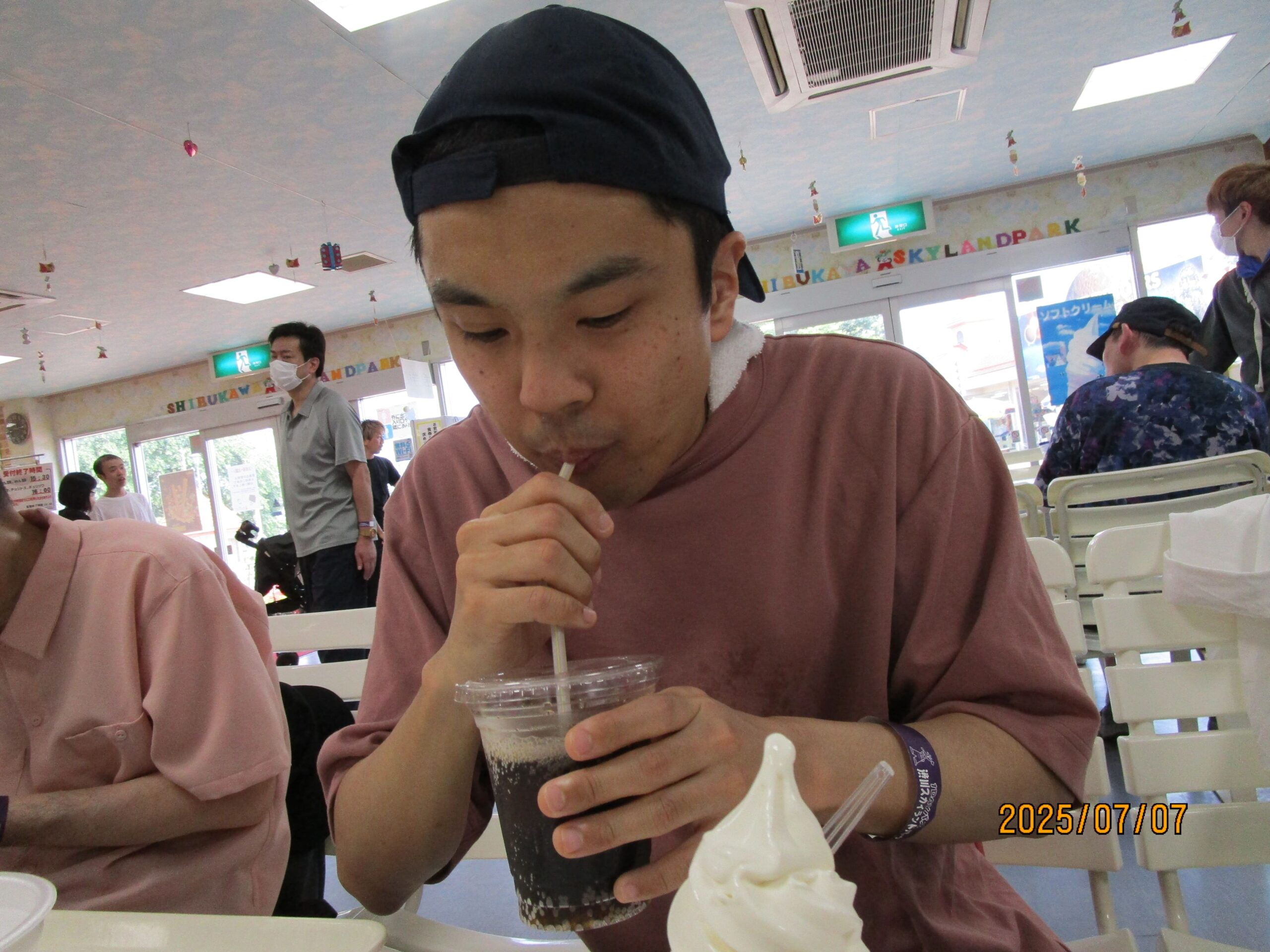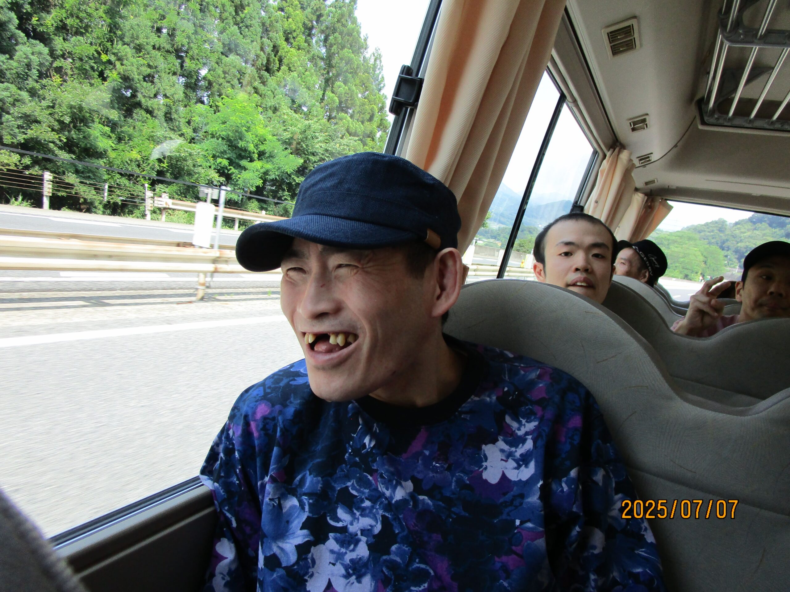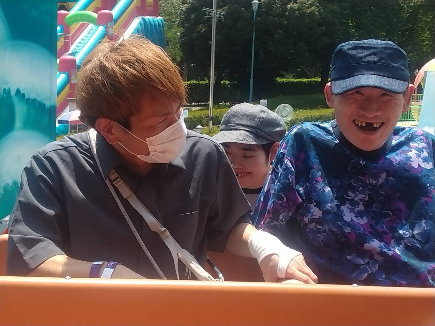 セレクト外出、第二弾!まきはたの里では入所者の皆さんと一緒に、晴天に恵まれた先日、群馬県渋川市にある遊園地へ日帰り旅行に出かけました。真夏の暑い日でしたが、入所者の皆さんは笑顔いっぱいで、メリーゴーランドやジェットコースター、観覧車など様々な乗り物に次々と挑戦していました。お昼には涼しい屋内レストランで食事をとり、午後からも幽霊屋敷など、それぞれが興味のあるアトラクションを楽しみました。帰りのバスの中では、疲れた表情を見せながらも「また来たい」という声が多く聞かれ、充実した一日を過ごすことができました。