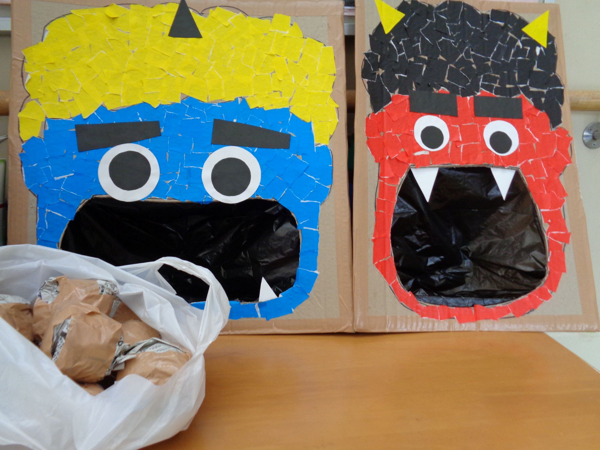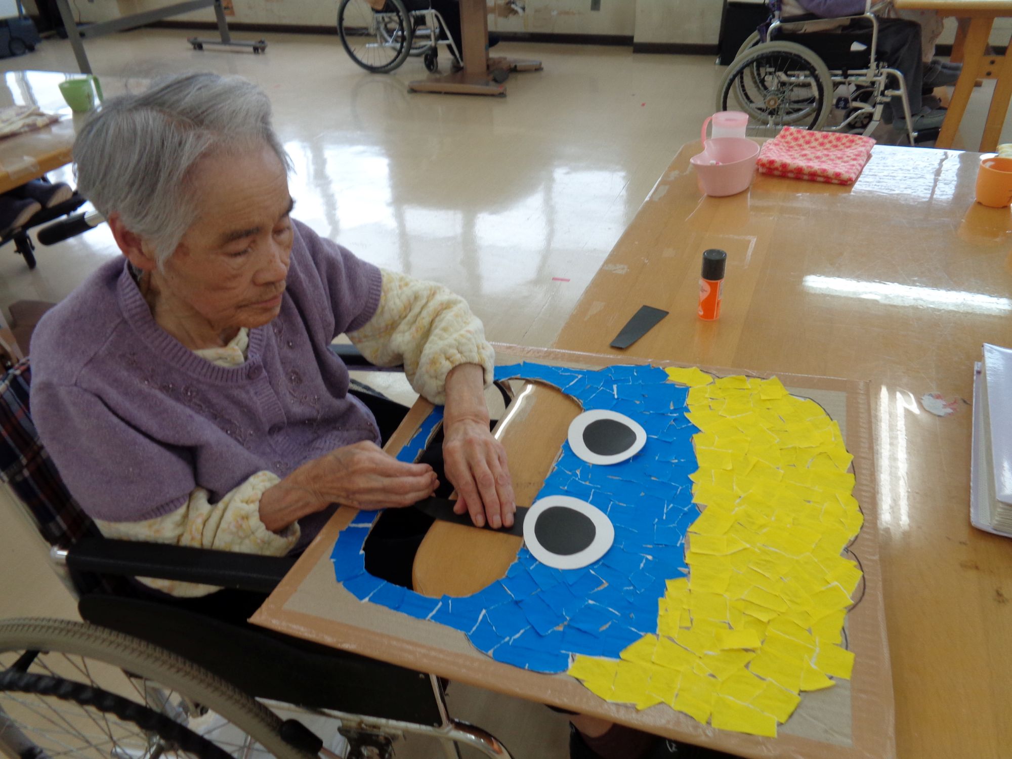 今年はご利用者の皆さまと一緒に「鬼の的」と「新聞紙の豆」を準備しました。新聞紙を丸めたり、折り紙を貼ったりと、楽しみながら作成した手作り工作です。いざ本番では、鬼の口をめがけて渾身の一投!勢いよく投げる方、狙いを定めてじっくり投げる方、プレイスタイルは様々ですが、見事命中した瞬間は皆で拍手喝采!弾けるような笑顔が輝きます。鬼を退治し活気あふれる福を呼び込む1日となりました。